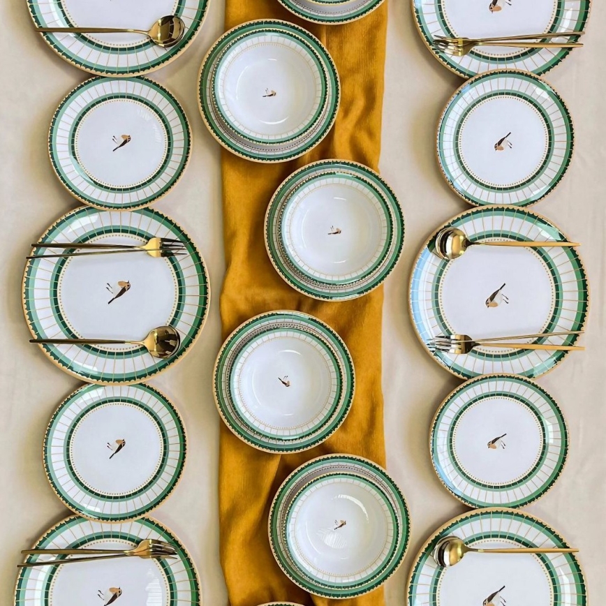 24-osaline lauanõude komplekt valge/roheline/kuldne/keraamika