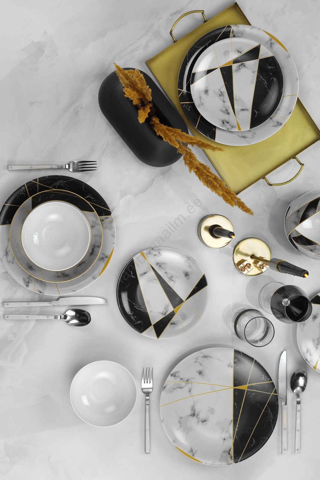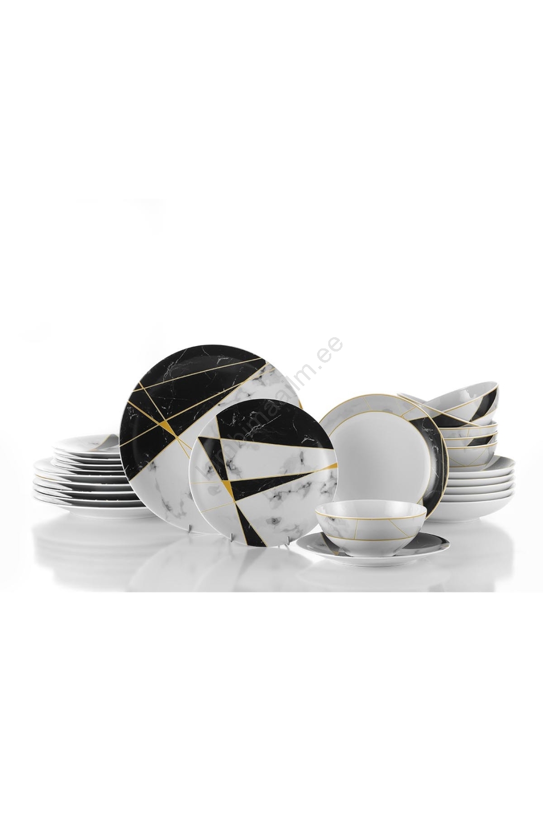 24-osaline portselanist söögikomplekt must/valge/kuldne | Lambimaailm