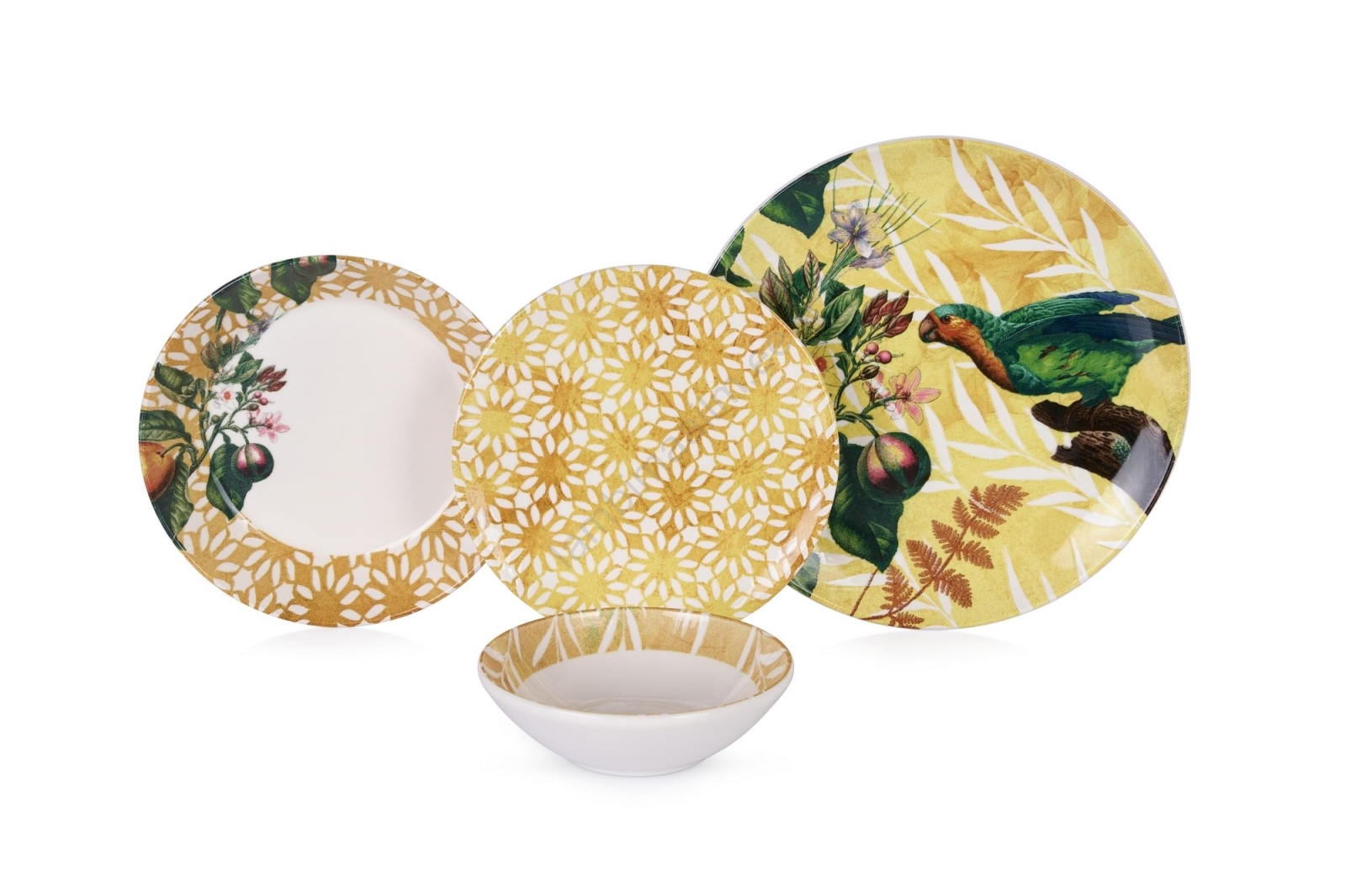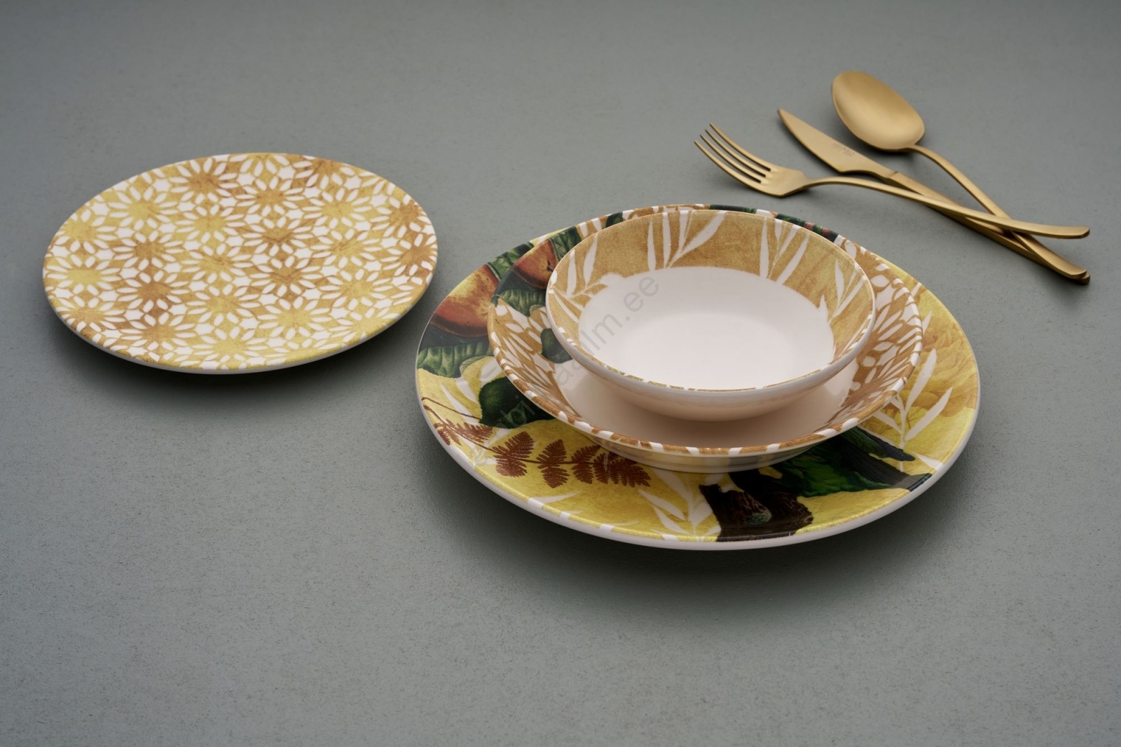 24-osaline söögikomplekt kollane/roheline/valge/keraamika