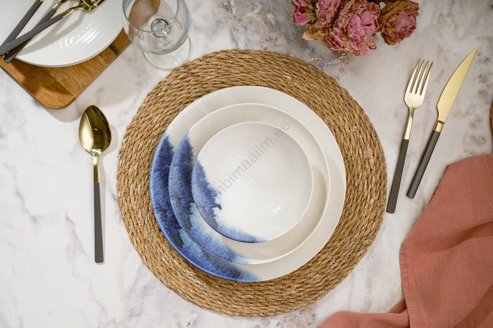 24-osaline söögikomplekt valge/sinine/portselan | Lambimaailm