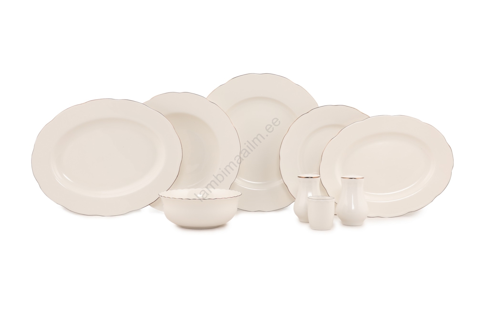 54-osaline söögikomplekt, valge/vaskne viimistlus, valmistatud luuportselanist | Lambimaailm