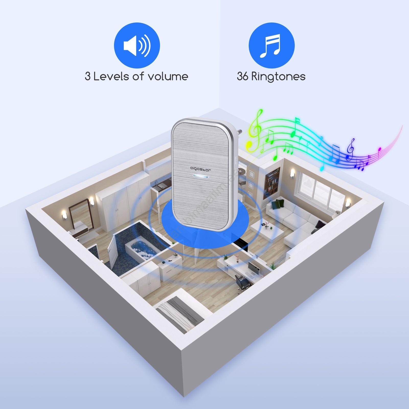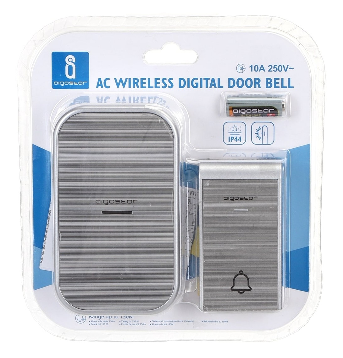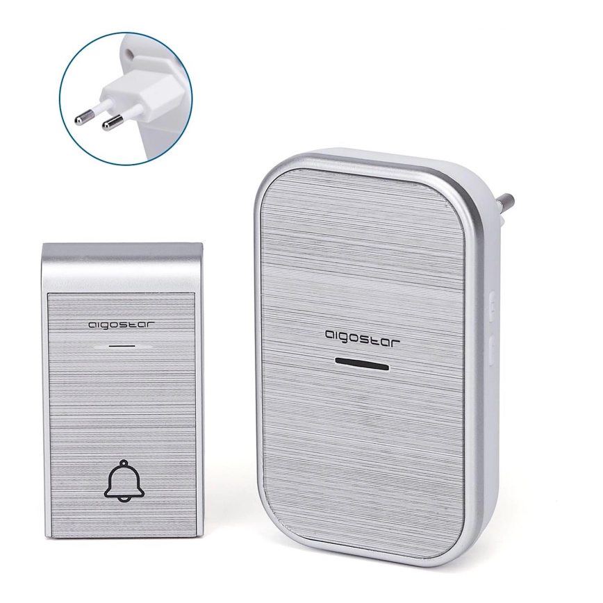Aigostar - Juhtmevaba pistikusse paigaldatav uksekell 230V IP44, hõbedane | Lambimaailm