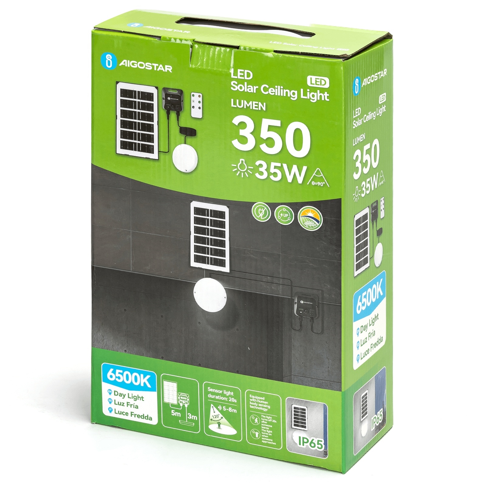 Aigostar - LED päikesepaneeliga laelamp anduriga LED/35W/3,7V 3000 mAh IP65 + kaugjuhtimispult