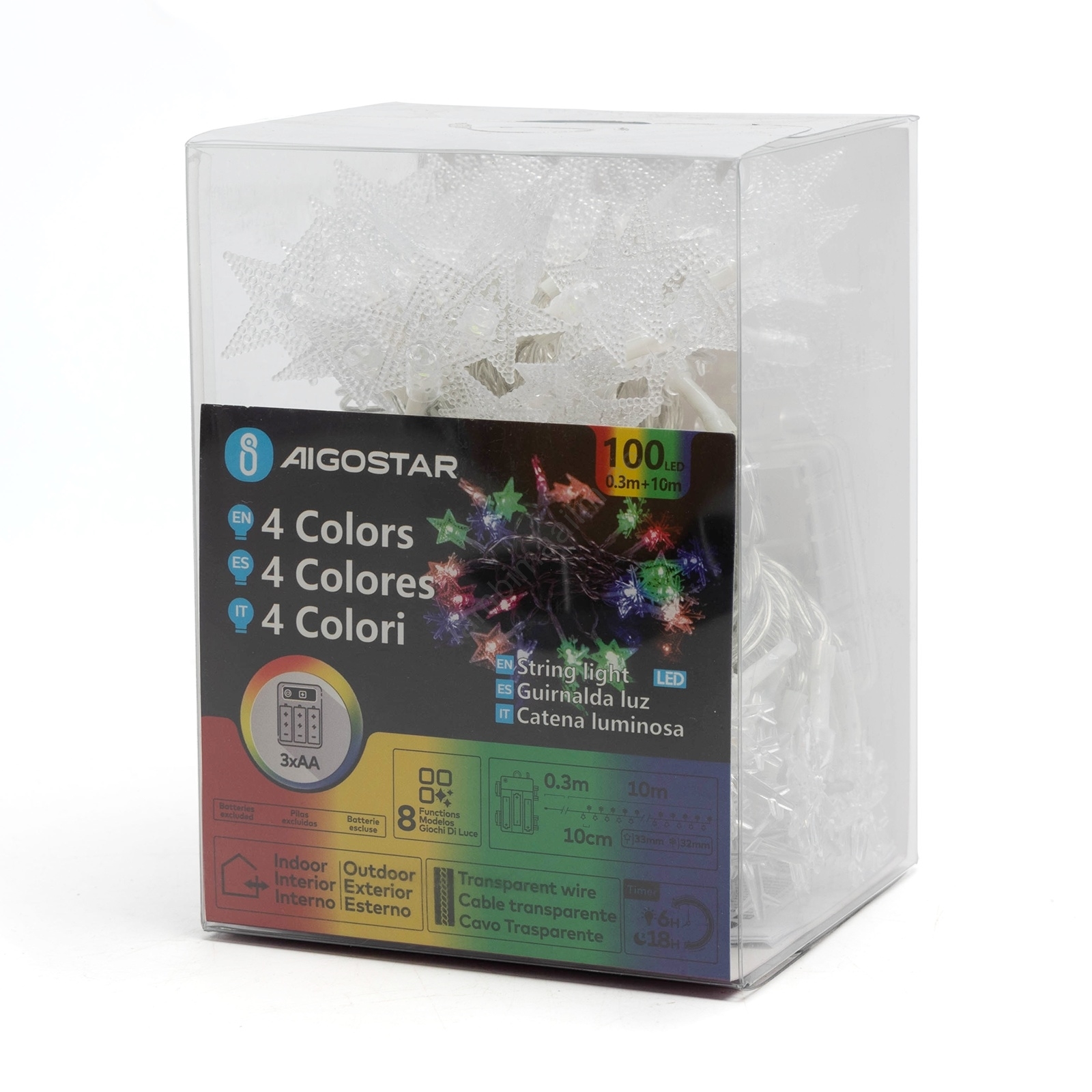 Aigostar - LED RGBY väljas kasutatav jõulukett 100xLED/8 funktsiooni 3xAA 10m IP44 tähed | Lambimaai