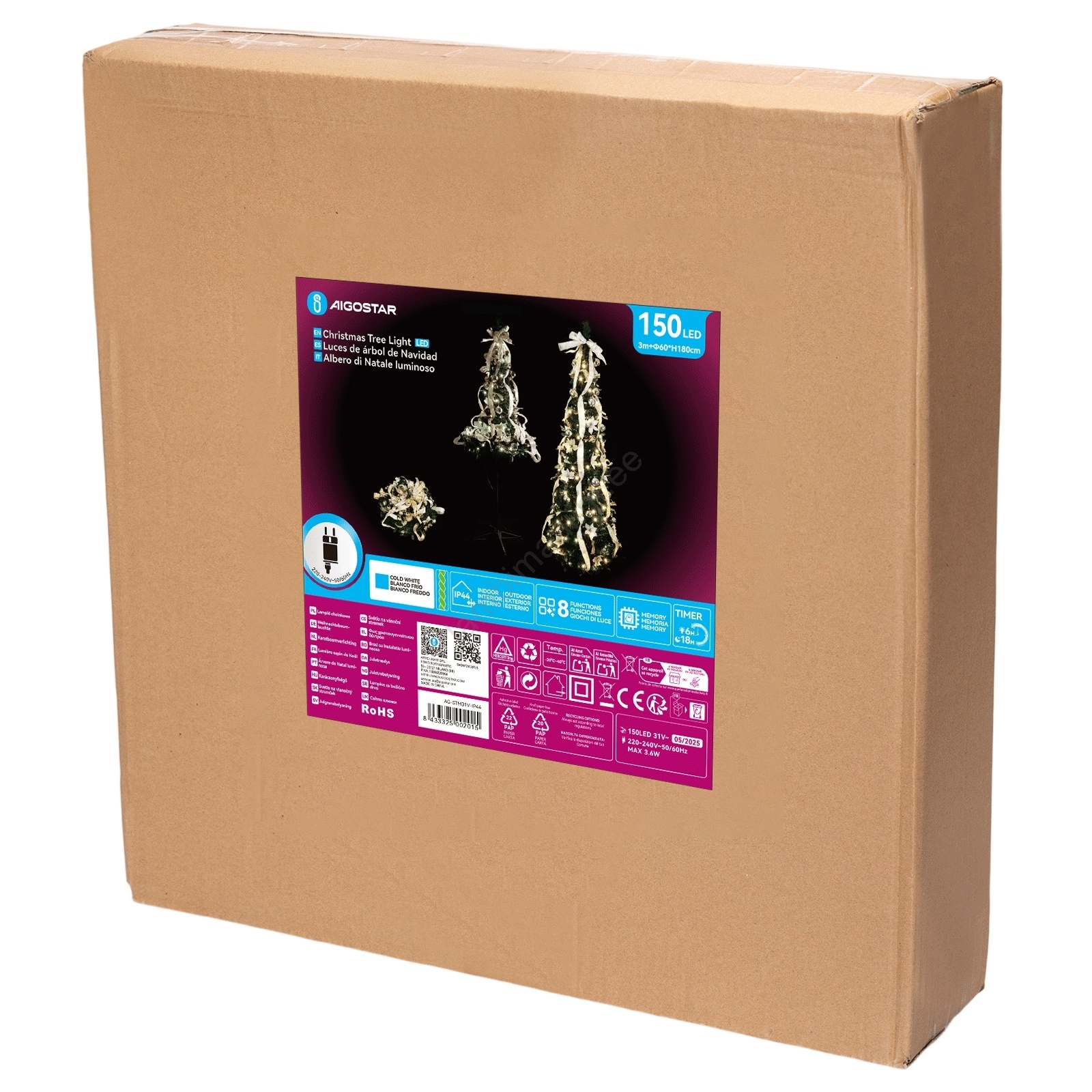 Aigostar - LED väline jõulupuu 150xLED/230V 1,8m IP44 valge/kuldne külmvalge | Lambimaailm