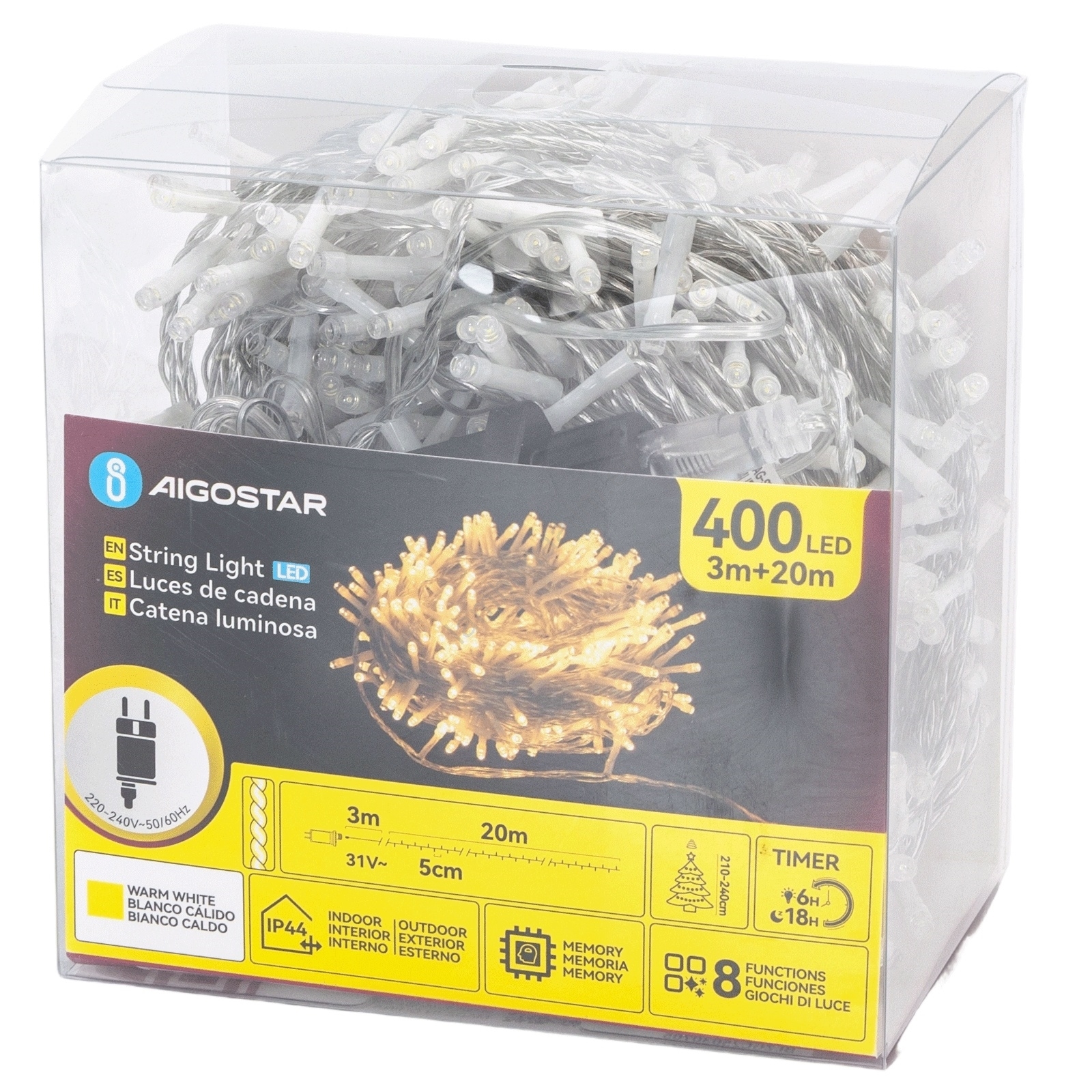 Aigostar - LED välisvalgustikett 400xLED/8 funktsiooni 20m IP44 soe valge