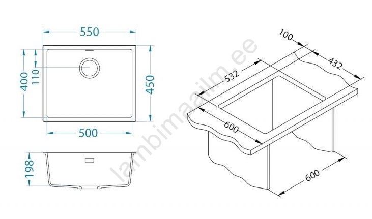 • Komplekti kuulub: graniitvalamu, kinnitused, korvventiil 3 1/2, sifoon koos nõudepesumasina haruga.