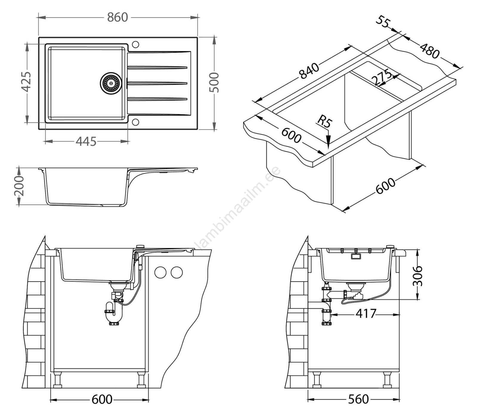 ALVEUS SETA23232 - Köögivalamu CADIT+valamu segisti MINTAS 34cm graniit/must | Lambimaailm