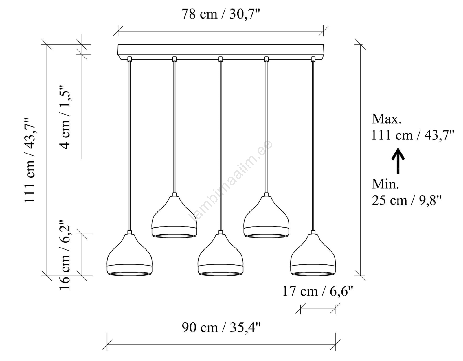 Ripplühter kaabliga YILDO 5xE27/40W/230V valge/kuldne | Lambimaailm
