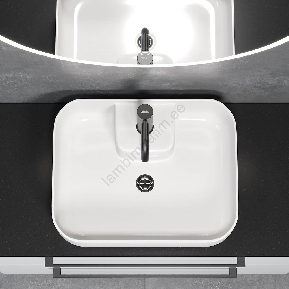 • Valamu on mõeldud paigaldamiseks tööpinnale, mis võimaldab paindlikku paigutust ja kombineerimist erinevat tüüpi vannitoa tööpindadega.