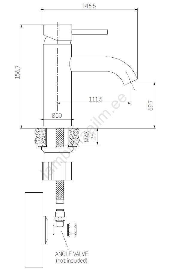 • Ühehoovaga segisti, mis võimaldab mugavalt reguleerida vee temperatuuri ja vooluhulka.