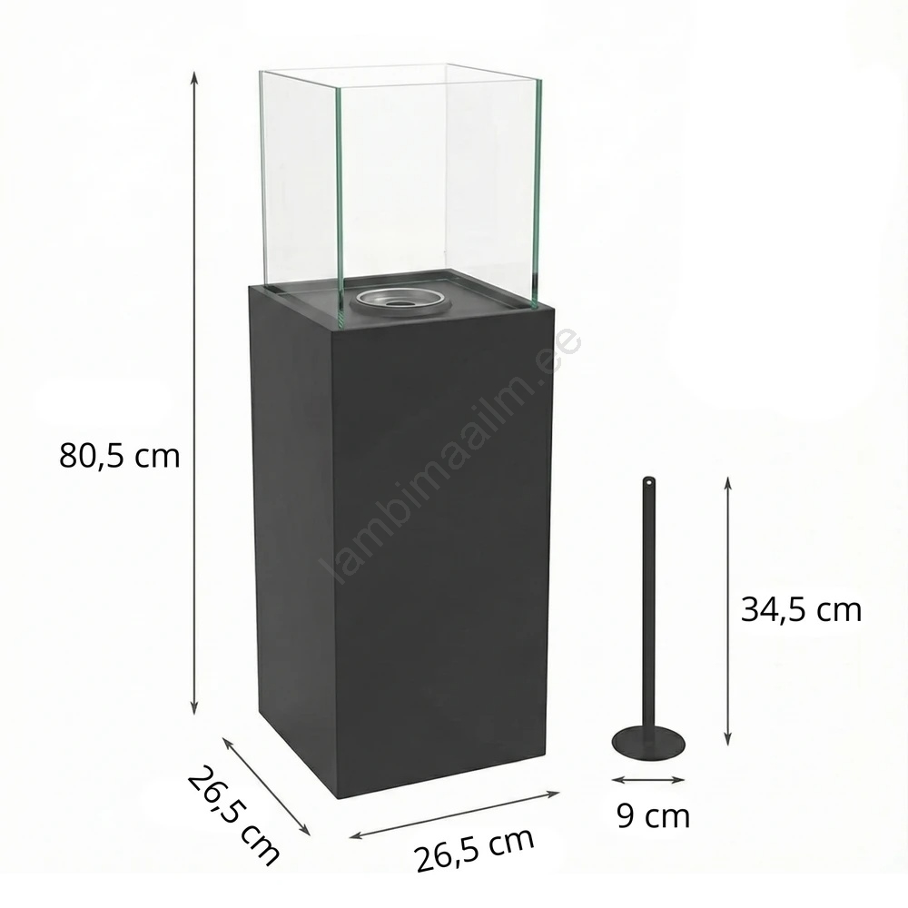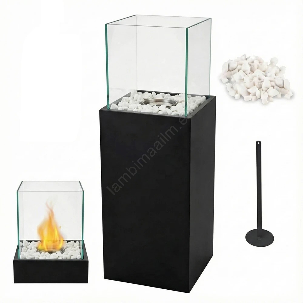 BIO kamin ALICANTE 26,5x80,5 cm 2kW must + kaitsekate