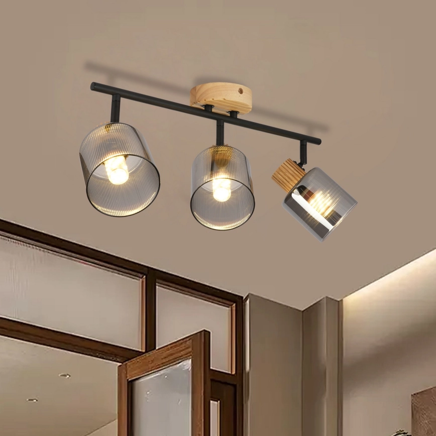 Brilagi - punktvalgusti HYGGE 3xE14/15W/230V puit/suitsune
