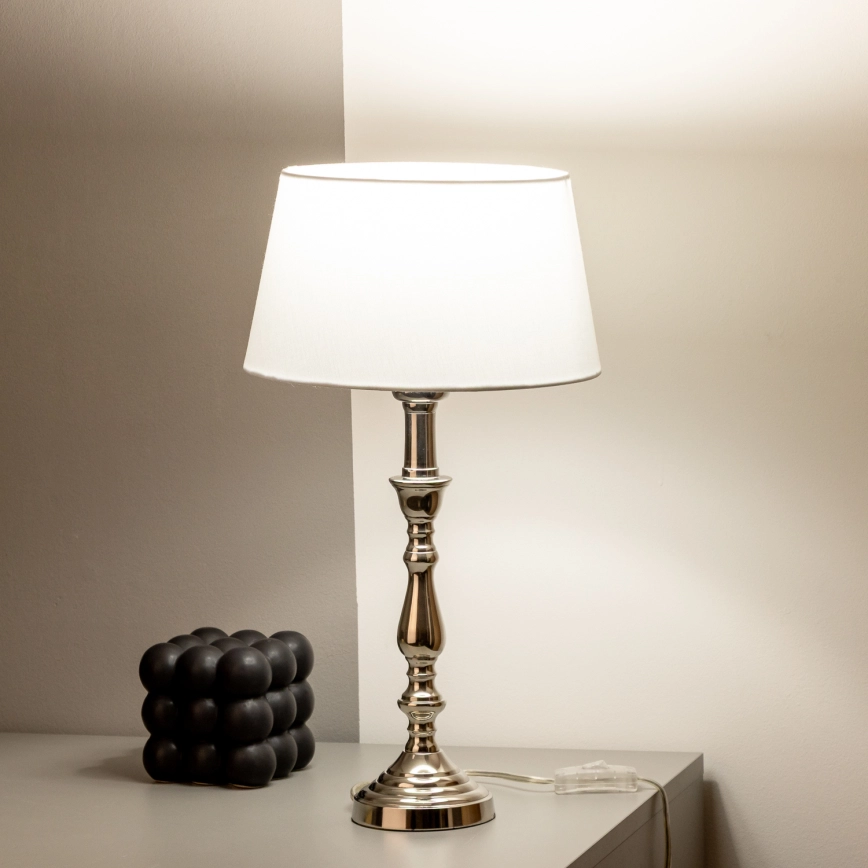 • Brilagi - Laualamp CERIA 1xE27/60W/230V läbimõõt 25 cm läikiv kroom/valge