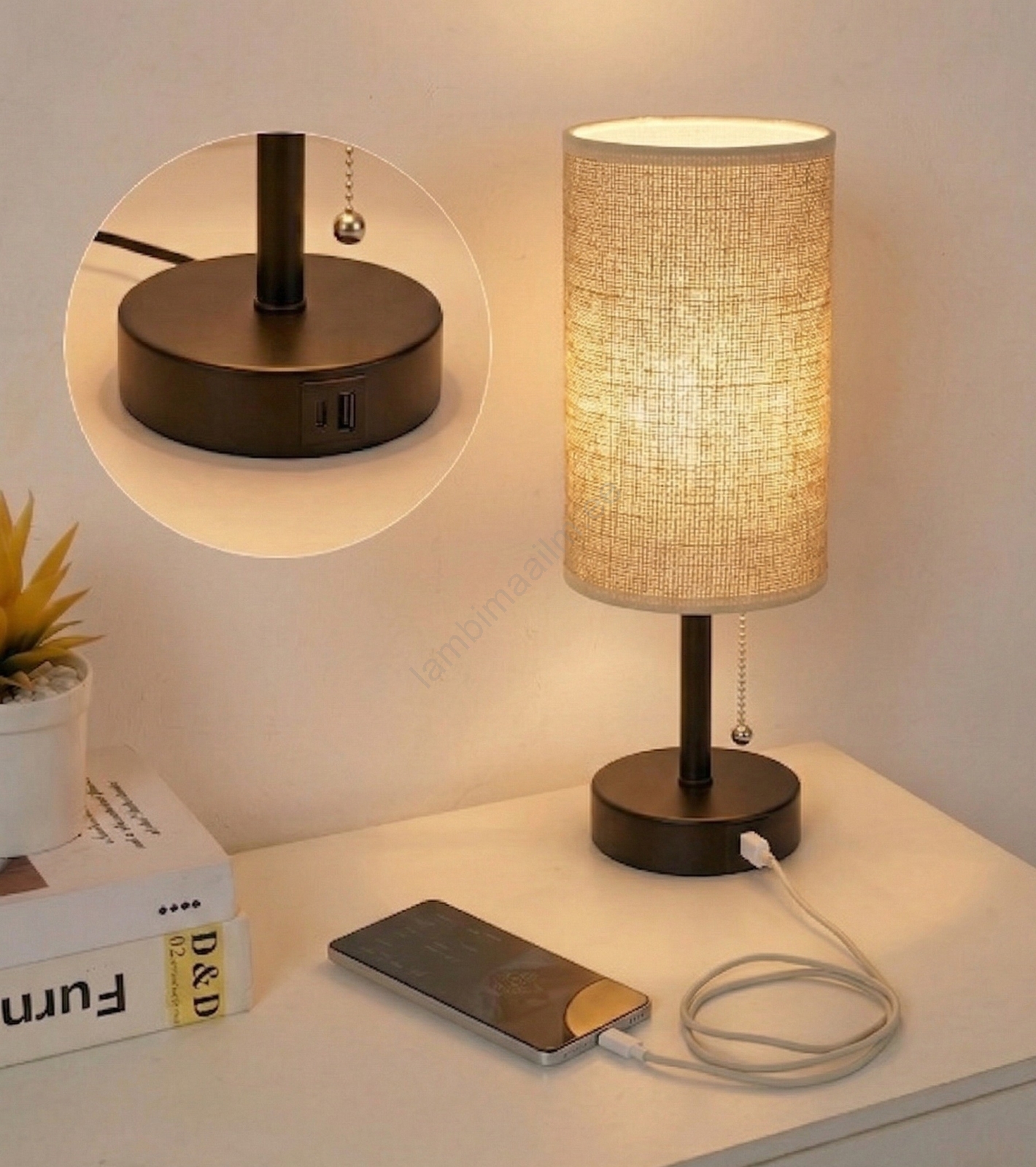 • Brilagi - Laualamp USB-pordiga TABLON 1xE27/25W/230V beež/must