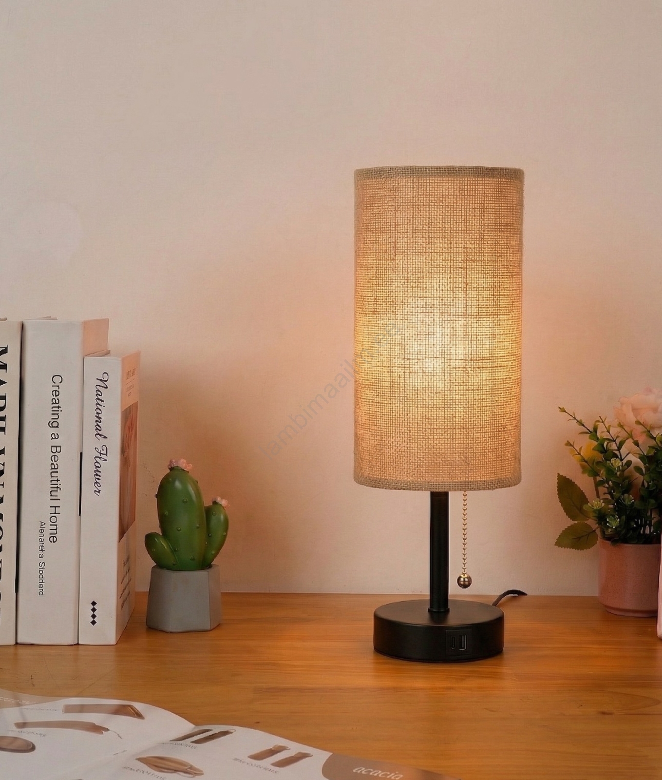 • Brilagi - Laualamp USB-pordiga TABLON 1xE27/25W/230V must/beež