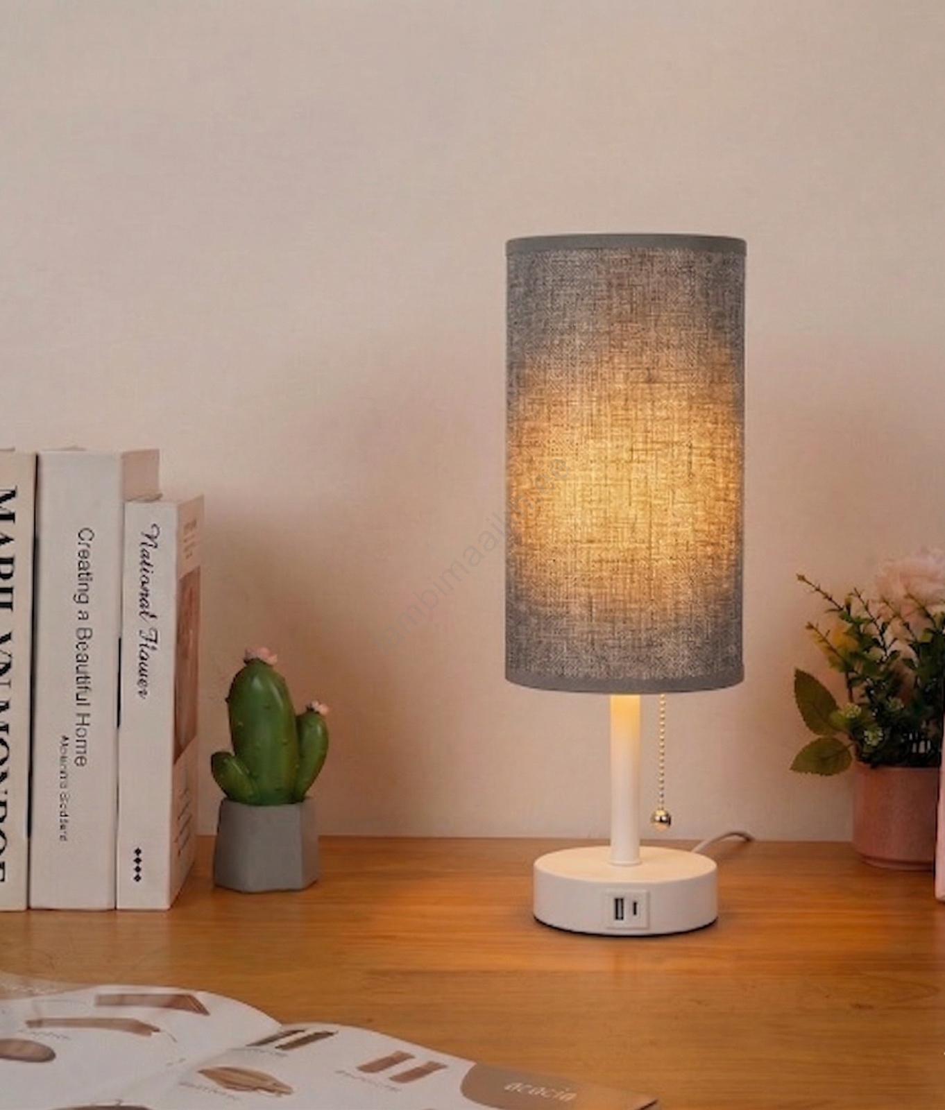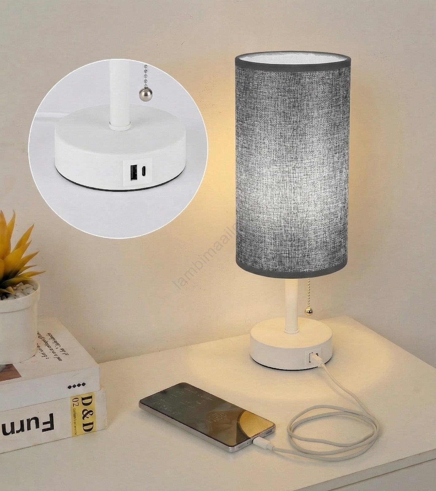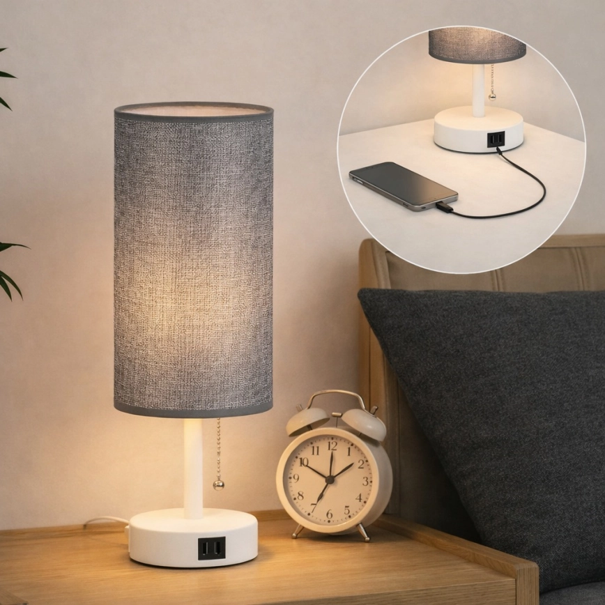 • Brilagi - laualamp USB-pordiga TABLON 1xE27/25W/230V beež/valge