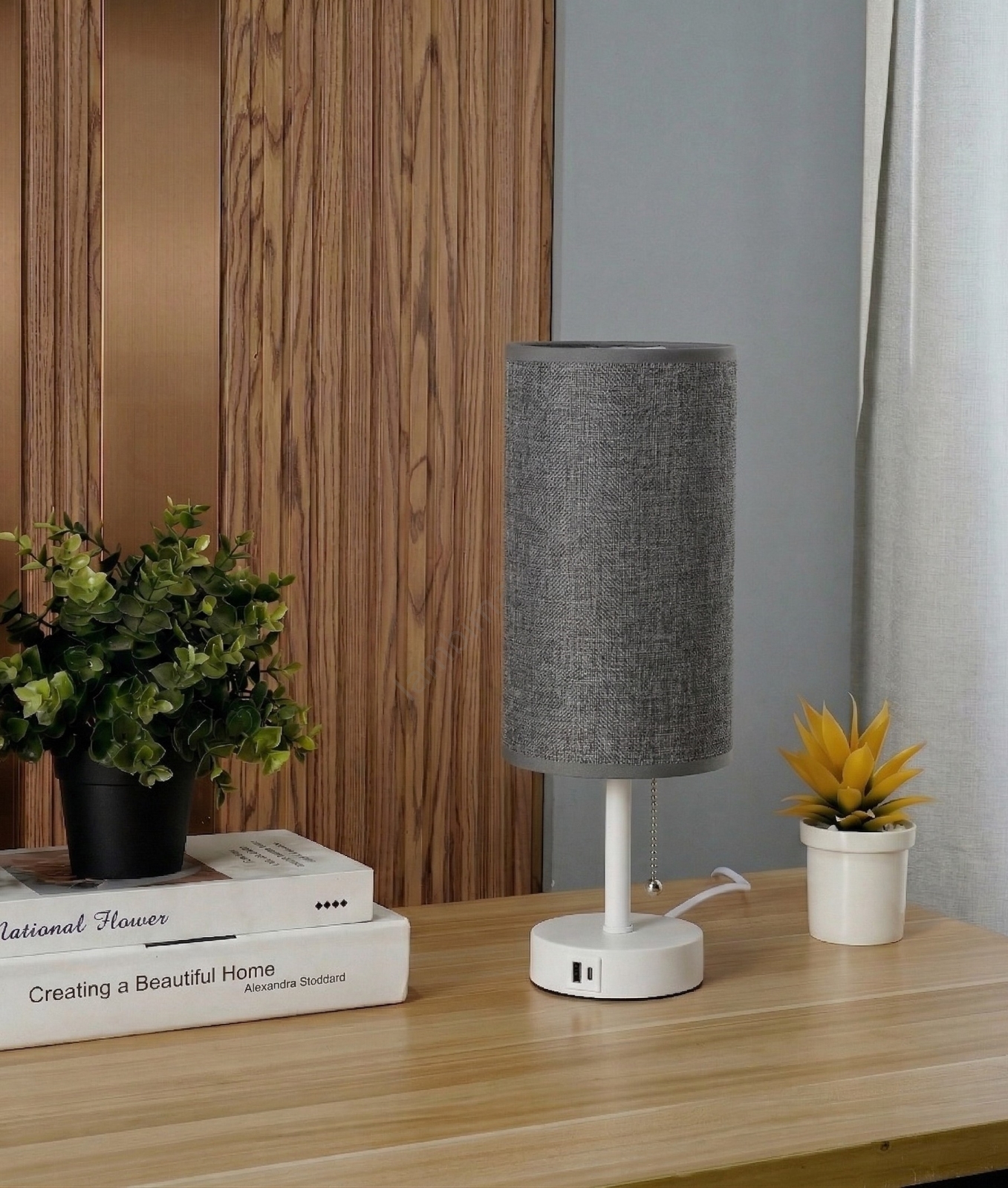 • Brilagi - Laualamp USB-pordiga TABLON 1xE27/25W/230V must/beež