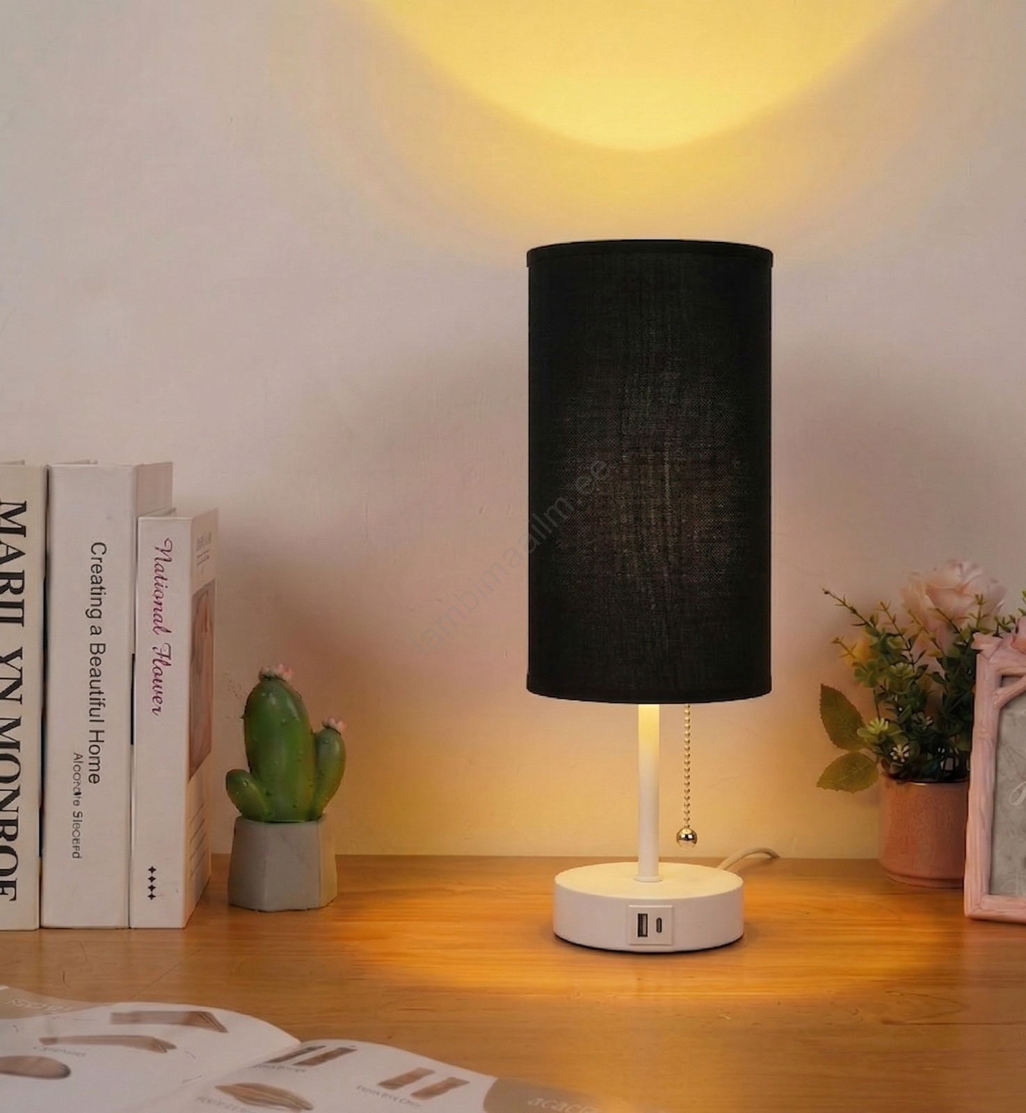 Brilagi - Laualamp USB-pordiga TABLON 1xE27/25W/230V valge/must