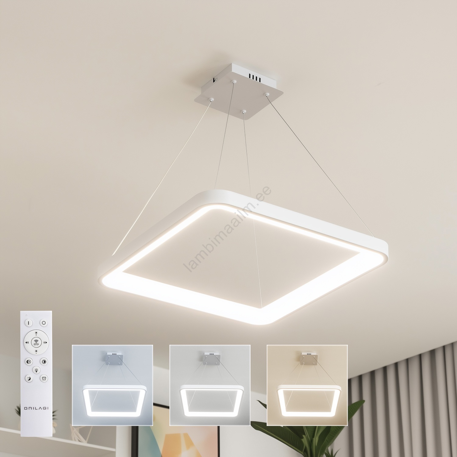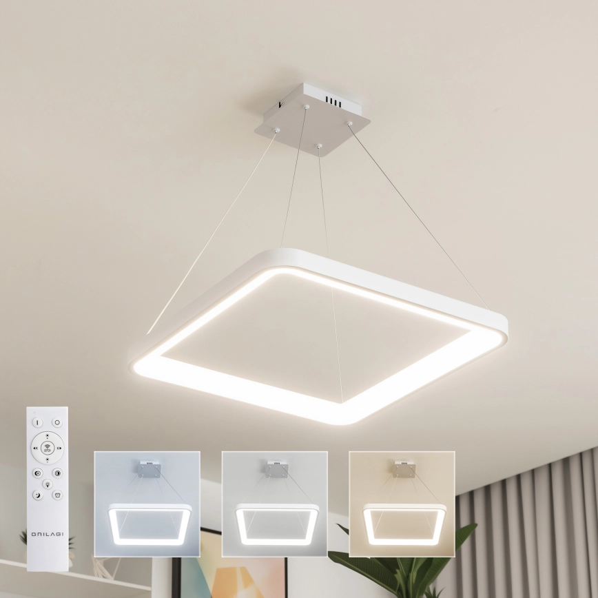 • Brilagi - LED-hämardatav rippvalgusti kaabliga FALCON SLIM LED/50W/230V 3000-6500K 50x50 cm valge + kaugjuhtimispult