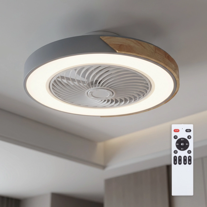 Brilagi - LED hämardatav laevalgusti ventilaatoriga LED/38W/230V 3000-6500K läbimõõt 50 cm hall/tamm + kaugjuhtimispult