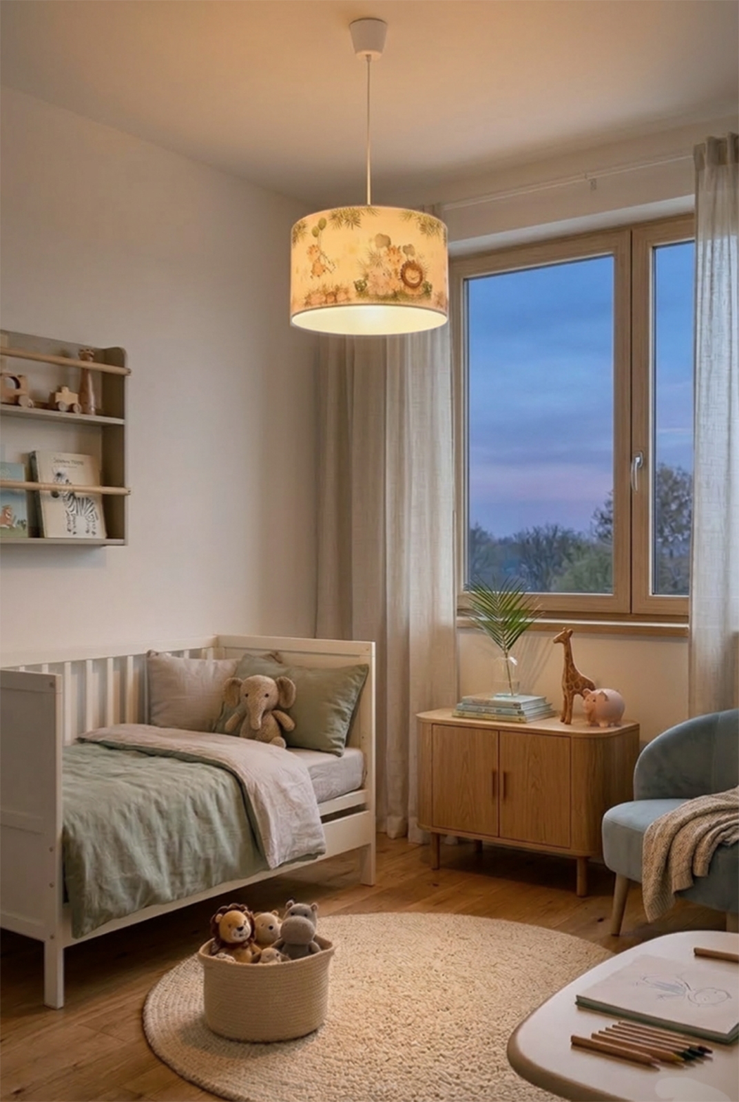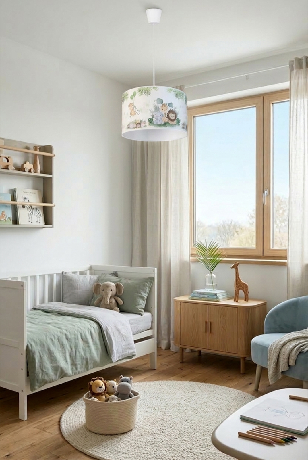 Brilagi - LED laste lühter köiega BOBO 1xE27/10W/230V Ø 35 cm valge/džungel iseloomustab kena ja funktsionaalne disain.  Valgustile sobib E27 keermega pirn. Siit saate soodsate hindadega osta ka teisi pirne. Saate huvitava lisandi oma koju.