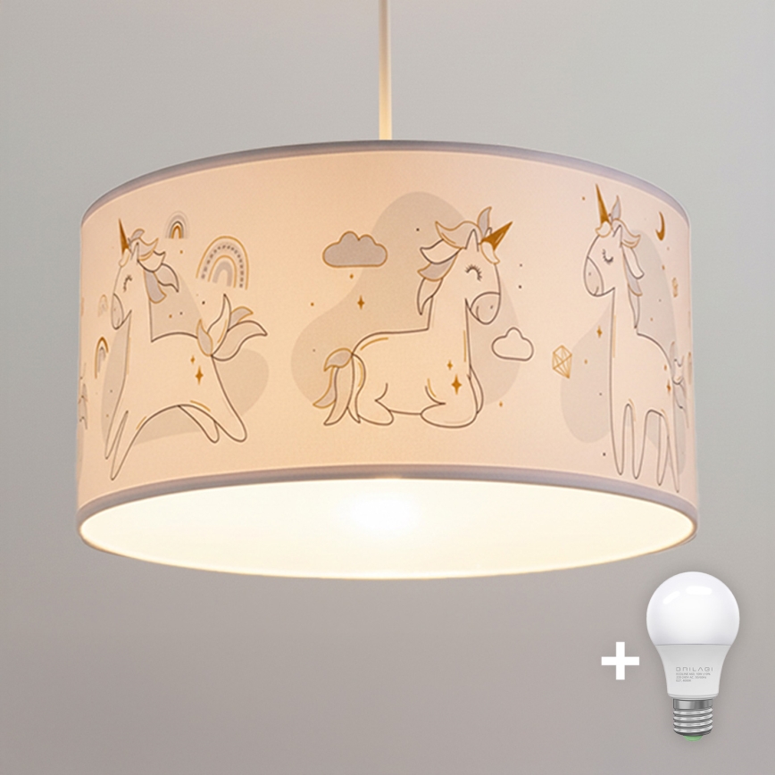• Brilagi - LED lastetoa riputatav laelamp kaablil BOBO 1xE27/10W/230V Ø 35 cm valge/ükssarvikud