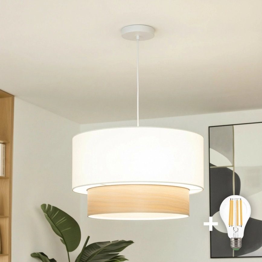• Brilagi - LED-lühter kaabliga CERIA 1xE27/40W/230V, Ø 50 cm, valge/beež