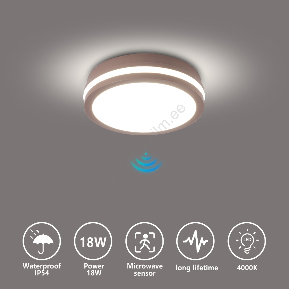 • Brilagi - LED-välislaevalgusti liikumisanduriga BENE LED/18W/230V Ø 21,5 cm, valge, IP54