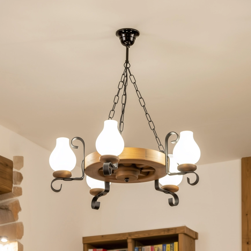 Brilagi - Ketiga riputatav lühter ROATA 5xE14/40W/230V Ø 50 cm pöök iseloomustab kena ja funktsionaalne disain.  Valgustile sobib E14 keermega pirn. Siit saate soodsate hindadega osta ka teisi pirne. Saate huvitava lisandi oma koju.