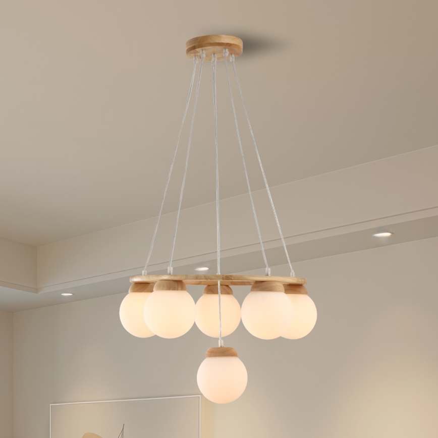 Brilagi - VISBY WOOD rippvalgusti kaablil 6xE27/60W/230V Ø 58 cm, puidust