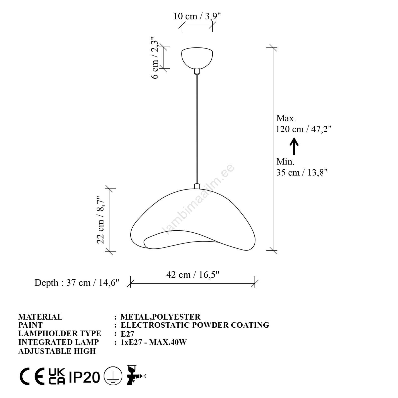 Brilagi - Ripplühter kaabliga WABI SABI 1xE27/40W/230V Ø 42 cm valge iseloomustab kena ja funktsionaalne disain.  Valgustile sobib E27 keermega pirn. Siit saate soodsate hindadega osta ka teisi pirne. Saate huvitava lisandi oma koju.