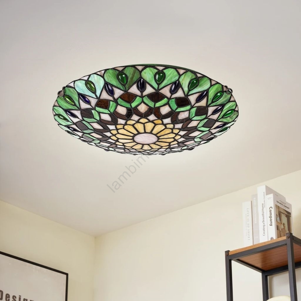 • Brilagi - Tiffany vitraažist laelamp FOLIA 2xE27/60W/230V läbimõõt 40 cm