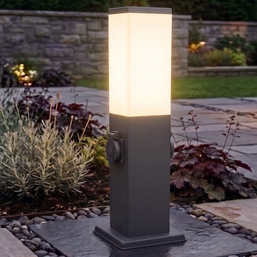 • Brilagi - Välisvalgusti kahe SCHUKO-pistikupesaga NOVA 1xE27/15W/230V 40 cm IP44 antratsiit