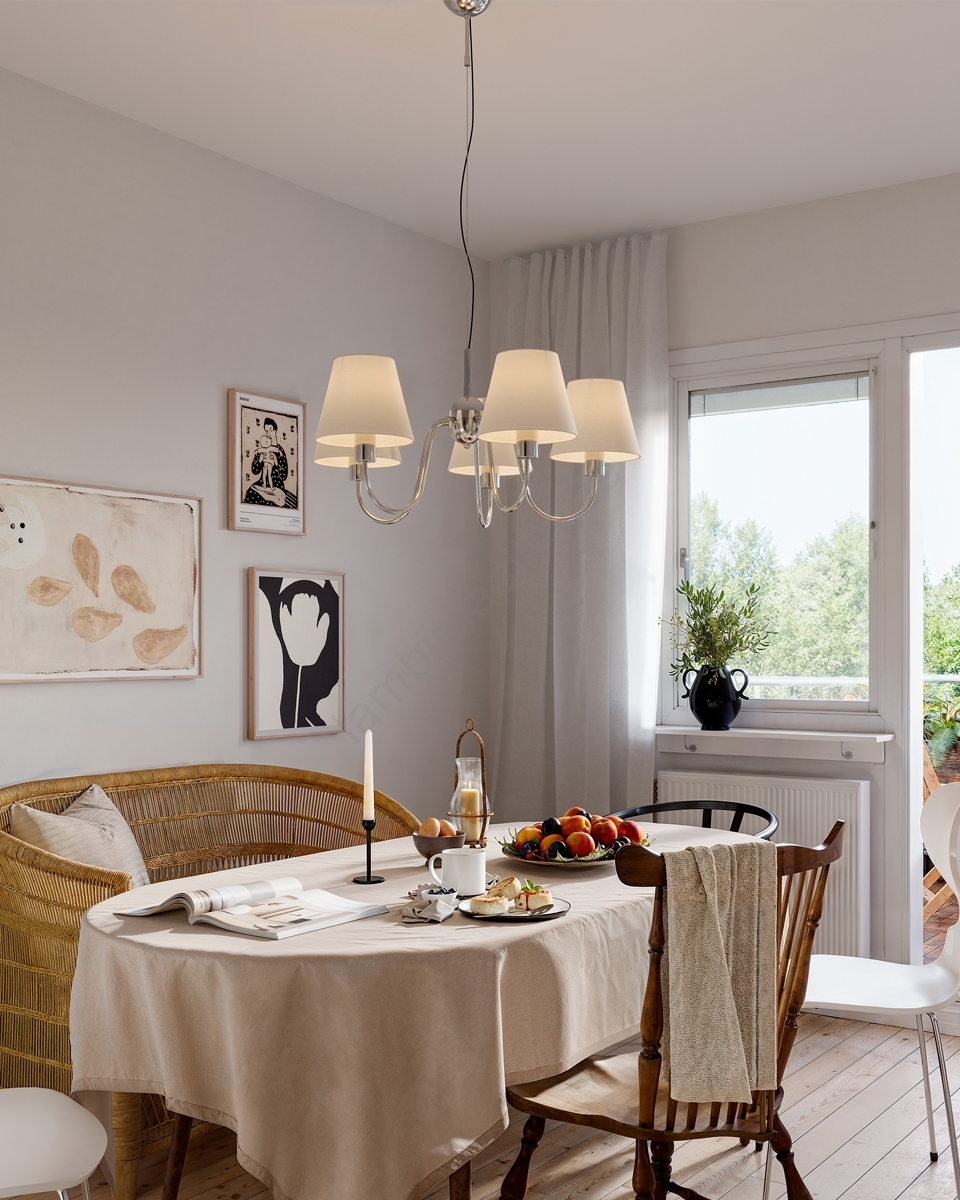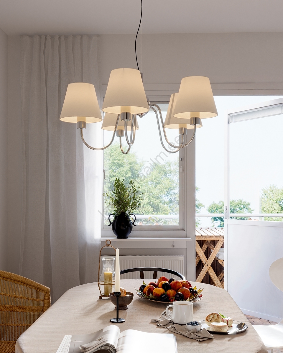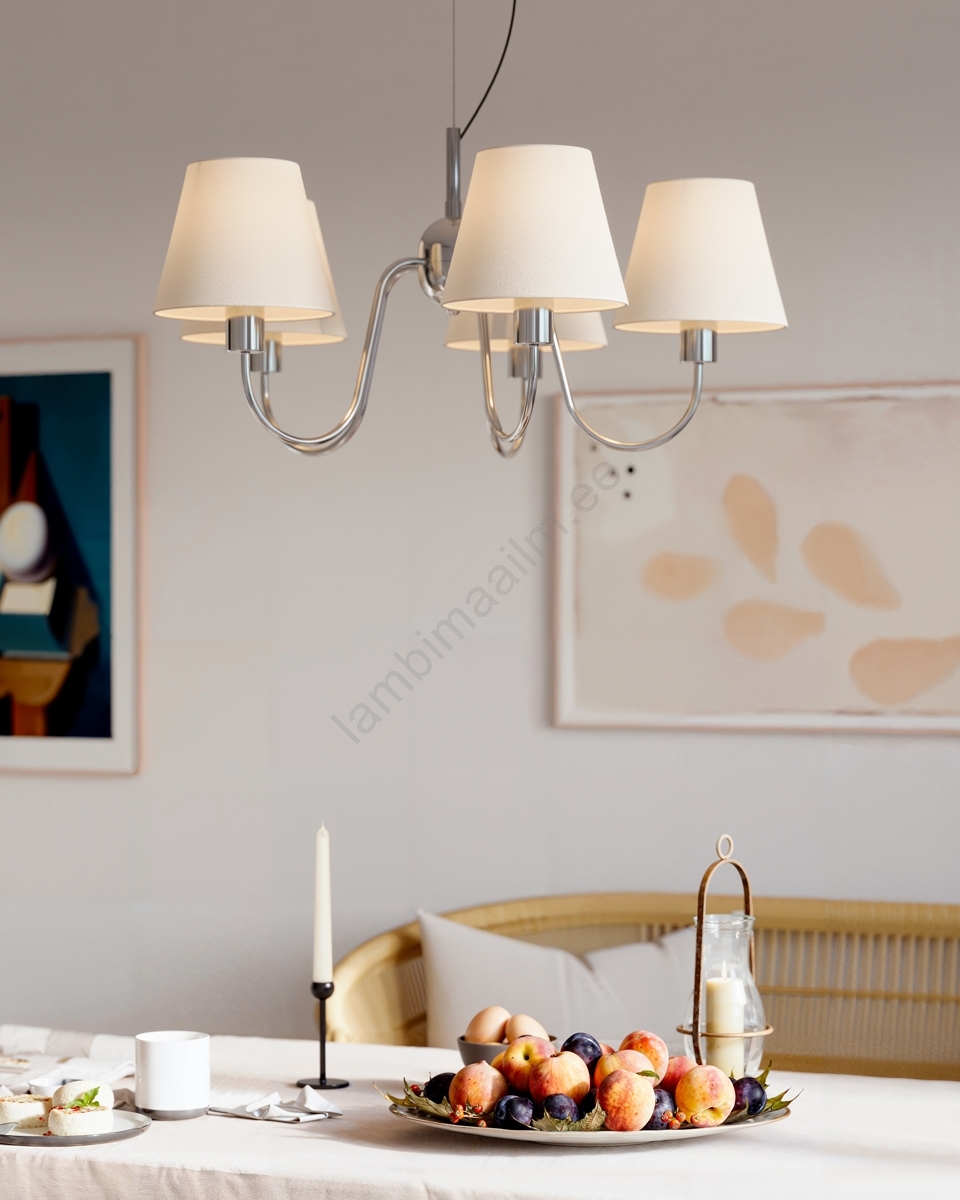 ByRydens - rippvalgusti kaablil LYNF 5xE14/8W/230V läikiv kroom/valge iseloomustab kena ja funktsionaalne disain.  Valgustile sobib E14 keermega pirn. Siit saate soodsate hindadega osta ka teisi pirne. Saate huvitava lisandi oma koju.