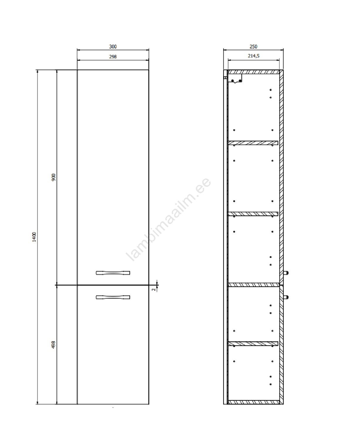• Kapi esipaneel, korpus ja sisemised riiulid on valmistatud 16mm puitlaastplaadist.