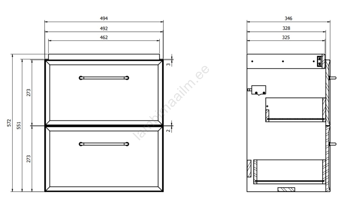 • Kapi esipaneel ja korpus on valmistatud 16 mm puitlaastplaadist, valge lakkkattega.
