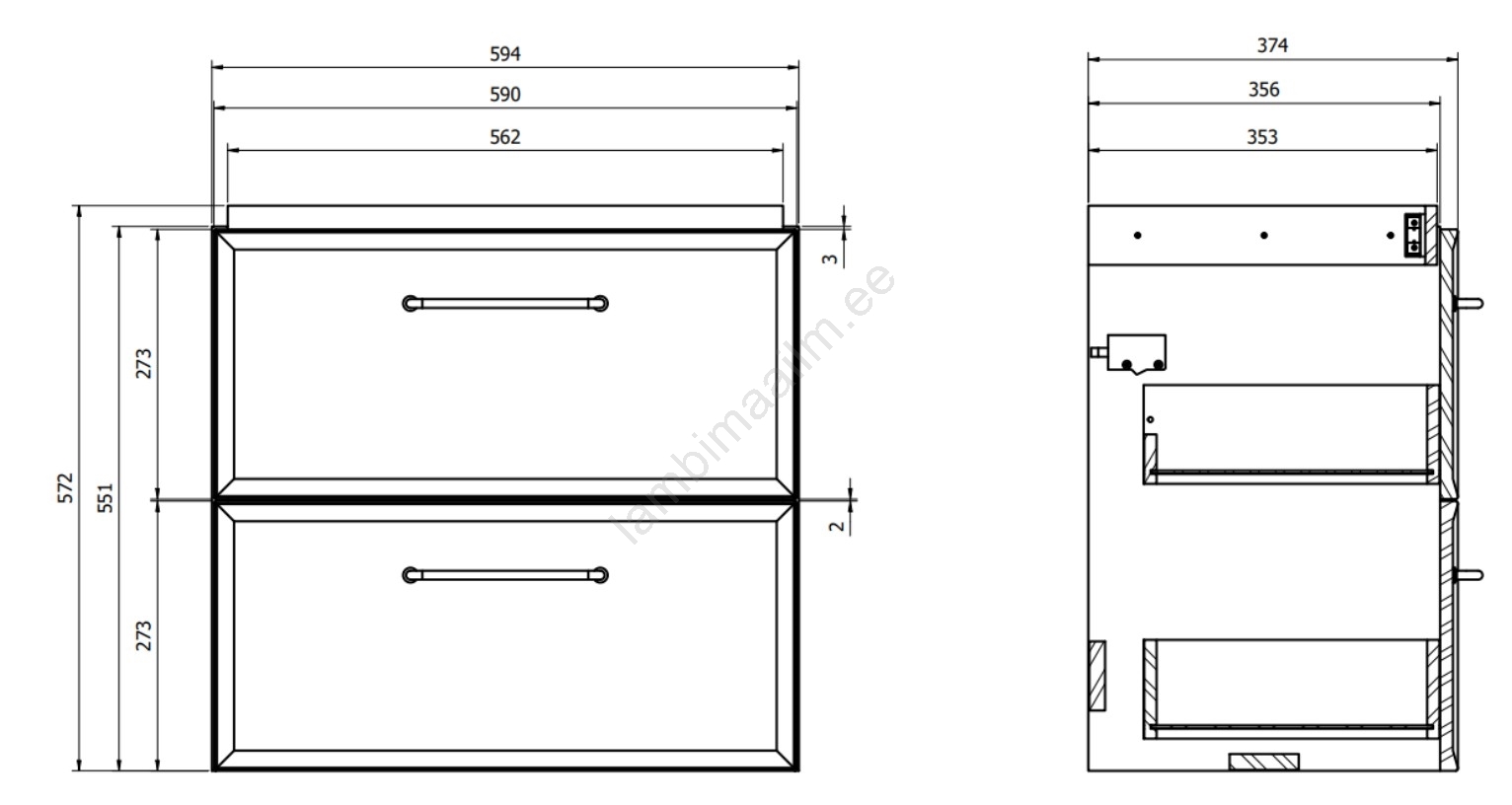 • Vannitoakappil on kaks avarat sahtlit pehme sulgemisega - pehme sulgemine.