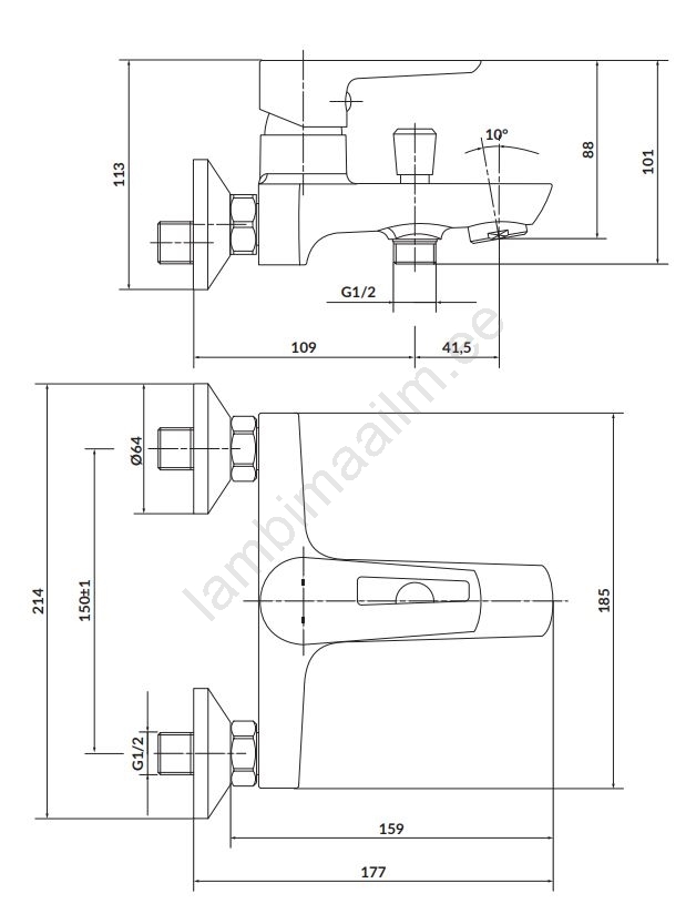 Cersanit S951-009 - Vanni kraan MILLE must/läikiv kroom | Lambimaailm