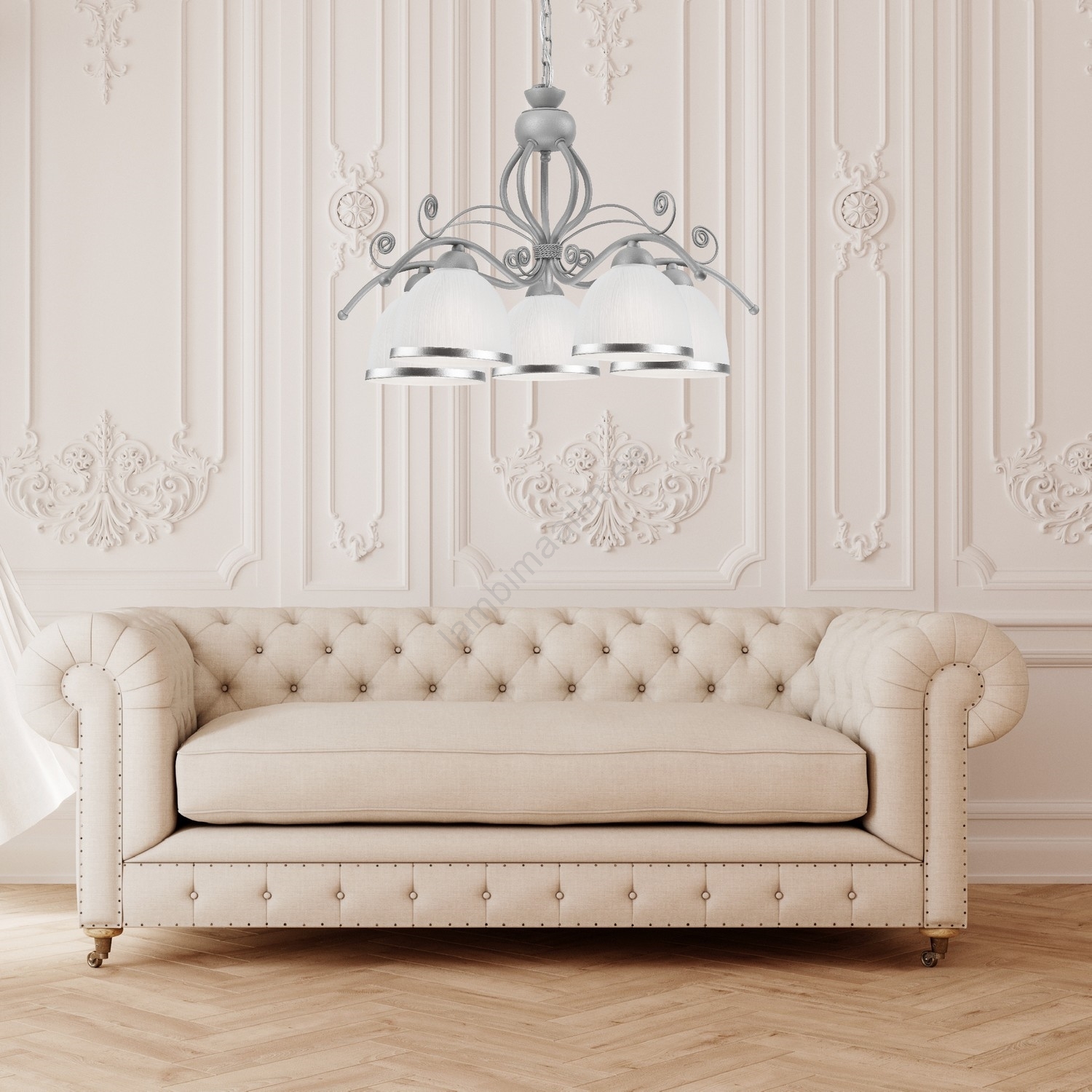 • Kettaga lühter RETRO II 5xE27/60W/230V hõbedane