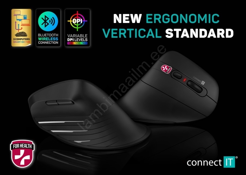 CONNECT IT CMO-2880-BK - Ergonoomiline juhtmevaba hiir Verti TriMode 1000/1600/2400 DPI 2xAAA must