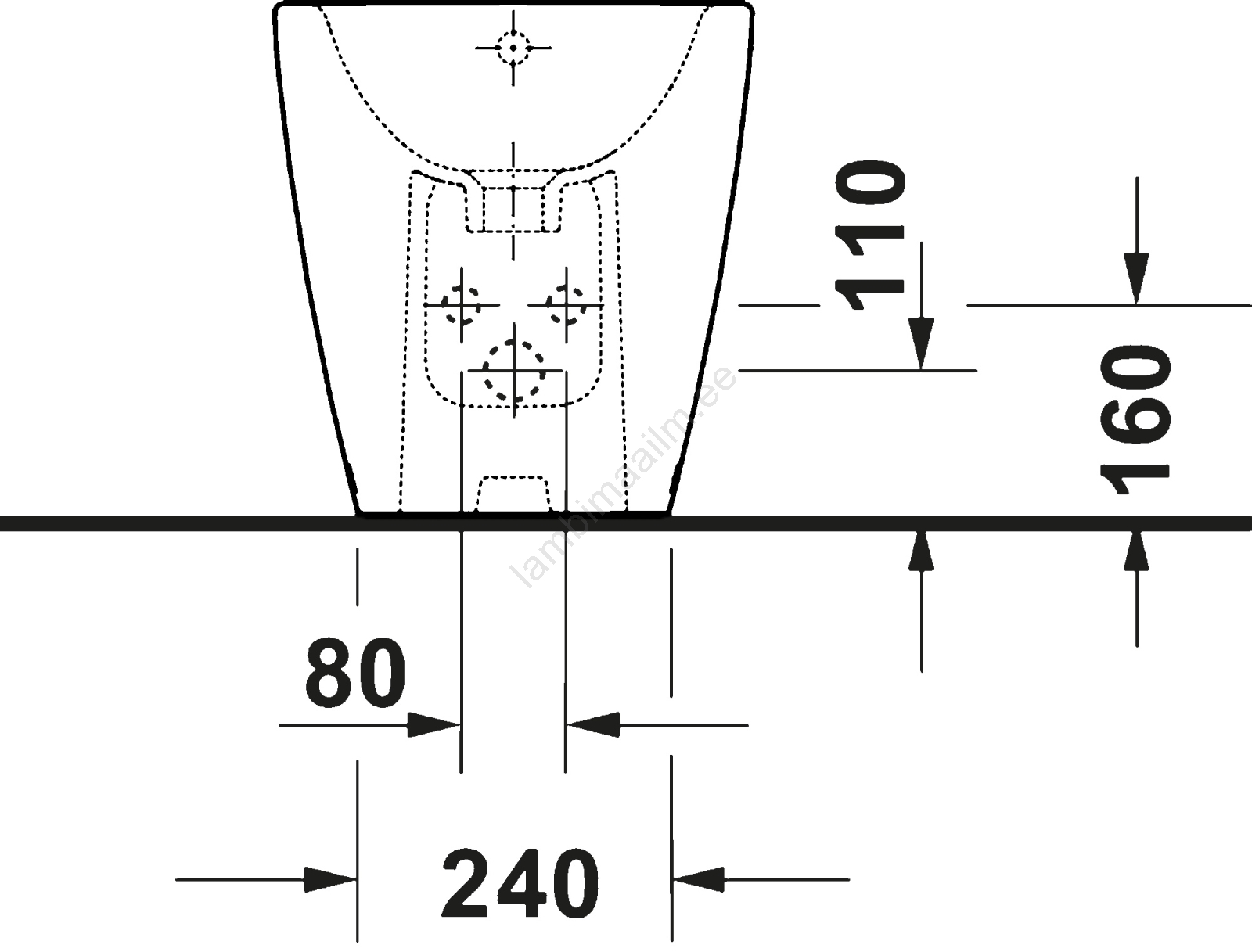 • Põrandabidee, valmistatud vastupidavast keraamikast, sileda pinnaga, mis lihtsustab puhastamist.