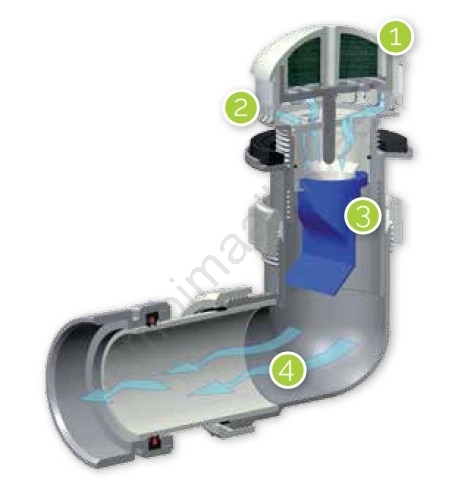• Galeriipildil on ristlõikega kujutatud veevaba pisoaari EcoStep P1.1 tööpõhimõte: