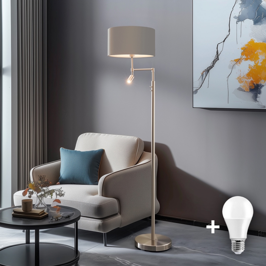 Eglo - LED põrandalamp TUNJA 1xE27/60W/230V + LED/2,1W läbimõõt 38 cm mattkroom/taupe