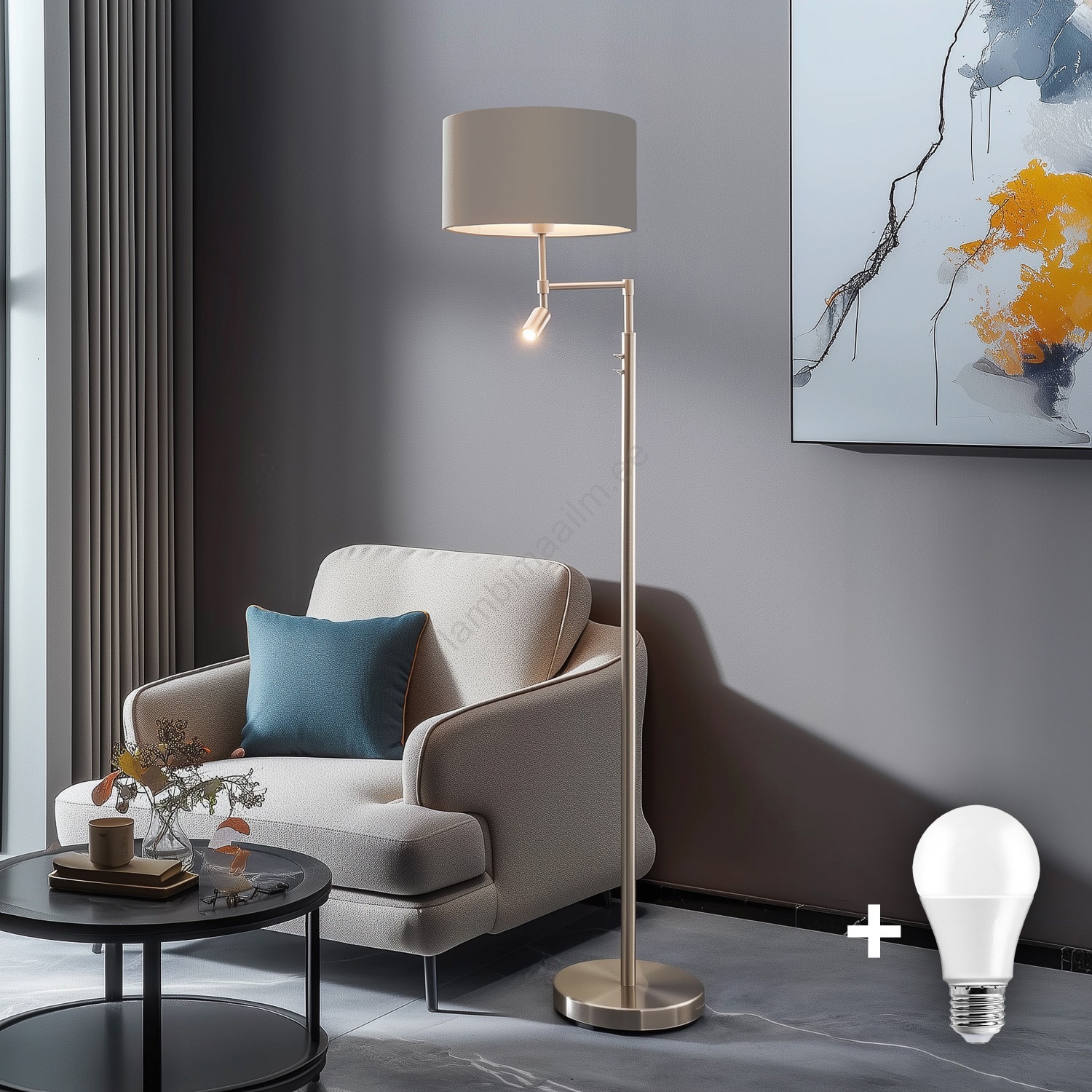 • Eglo - LED põrandalamp TUNJA 1xE27/60W/230V + LED/2,1W läbimõõt 38 cm mattkroom/taupe