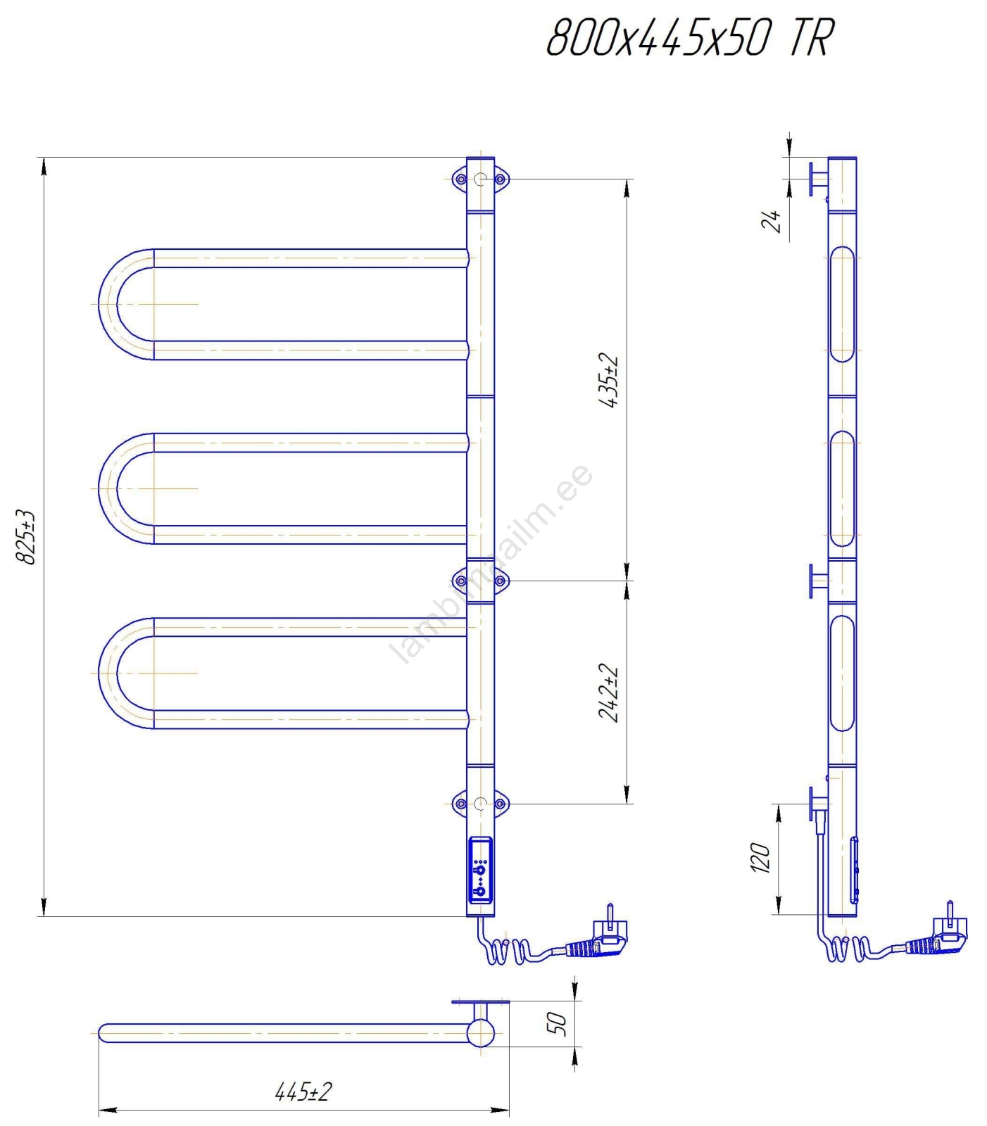 • Elektriline vannitoa rätikukuivati termostaadiga.
