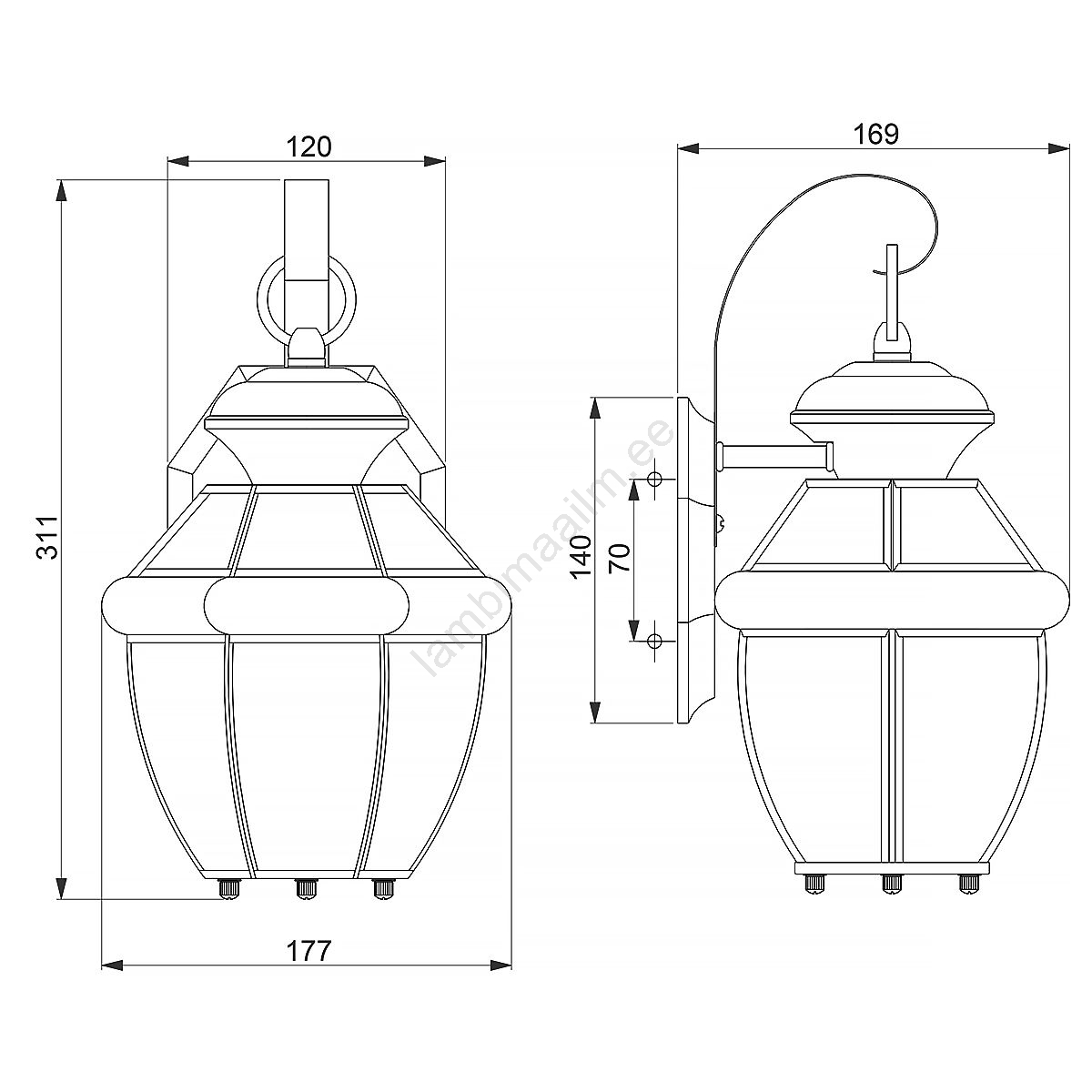 Elstead - Välisseinale kinnitatav seinavalgusti NEWBURY 1xE27/60W/230V IP44 iseloomustab kena ja funktsionaalne disain.  Valgustile sobib E27 keermega pirn. Siit saate soodsate hindadega osta ka teisi pirne. Saate huvitava lisandi oma koju.