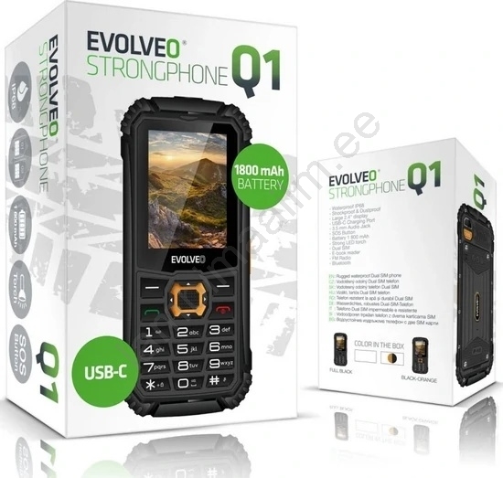 Evolveo - StrongPhone Q1, veekindel Dual SIM-telefon, must/oranž