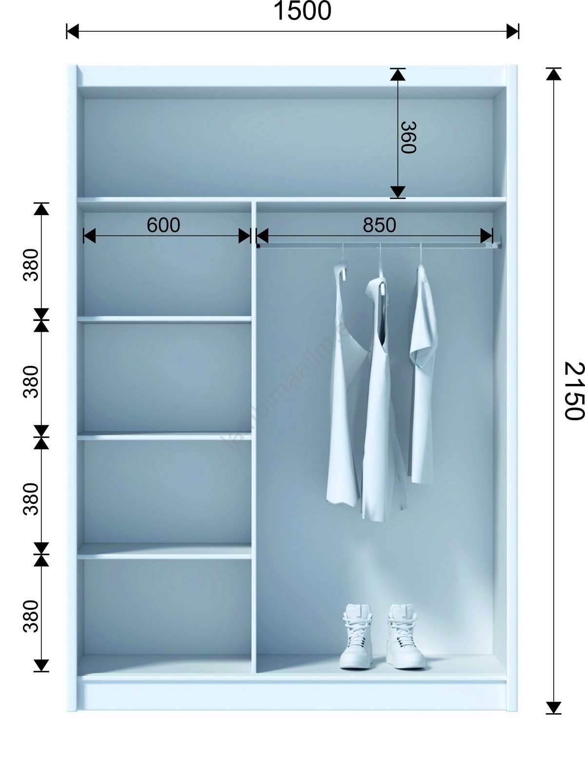 • Tooge oma koju elegantsi ja praktilisust rõhutav riidekapp, mis paistab silma puhaste joonte, ruumisäästlikkuse ja ajatu disainiga.