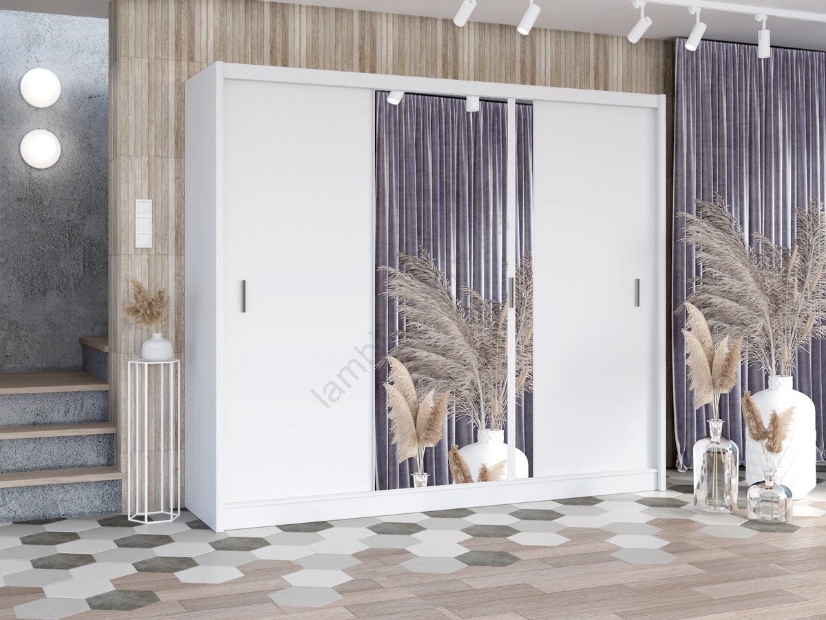 Riidekapp peegliga SABRINA 250x215 cm valge | Lambimaailm